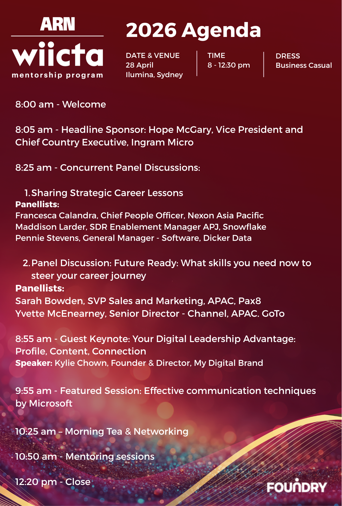 The WIICTA Mentorship Program (formerly WIICTA+) launched in 2025 – a half-day program held the morning before the Women in ICT Awards, featuring leadership workshops, career development sessions, and networking opportunities. It’s designed to inspire and empower the next generation of women in tech.